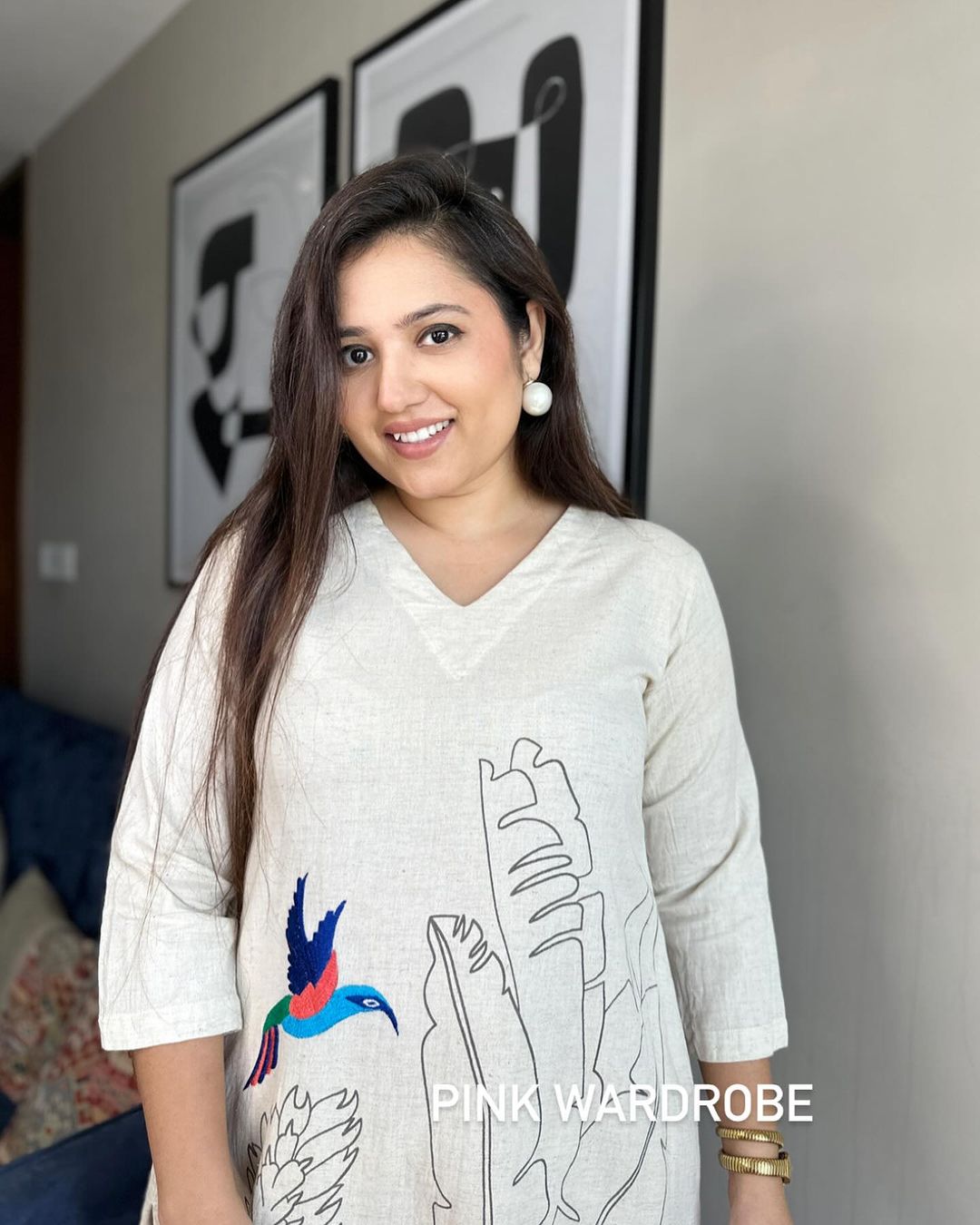 Details | New in festive aari work kurta Plazzo set. Get your hands on our beautiful off-white kurti with intricate thread aari work detailing in bright tone perfect for any auspicious occasion (Sumitra Enterprises 1) |