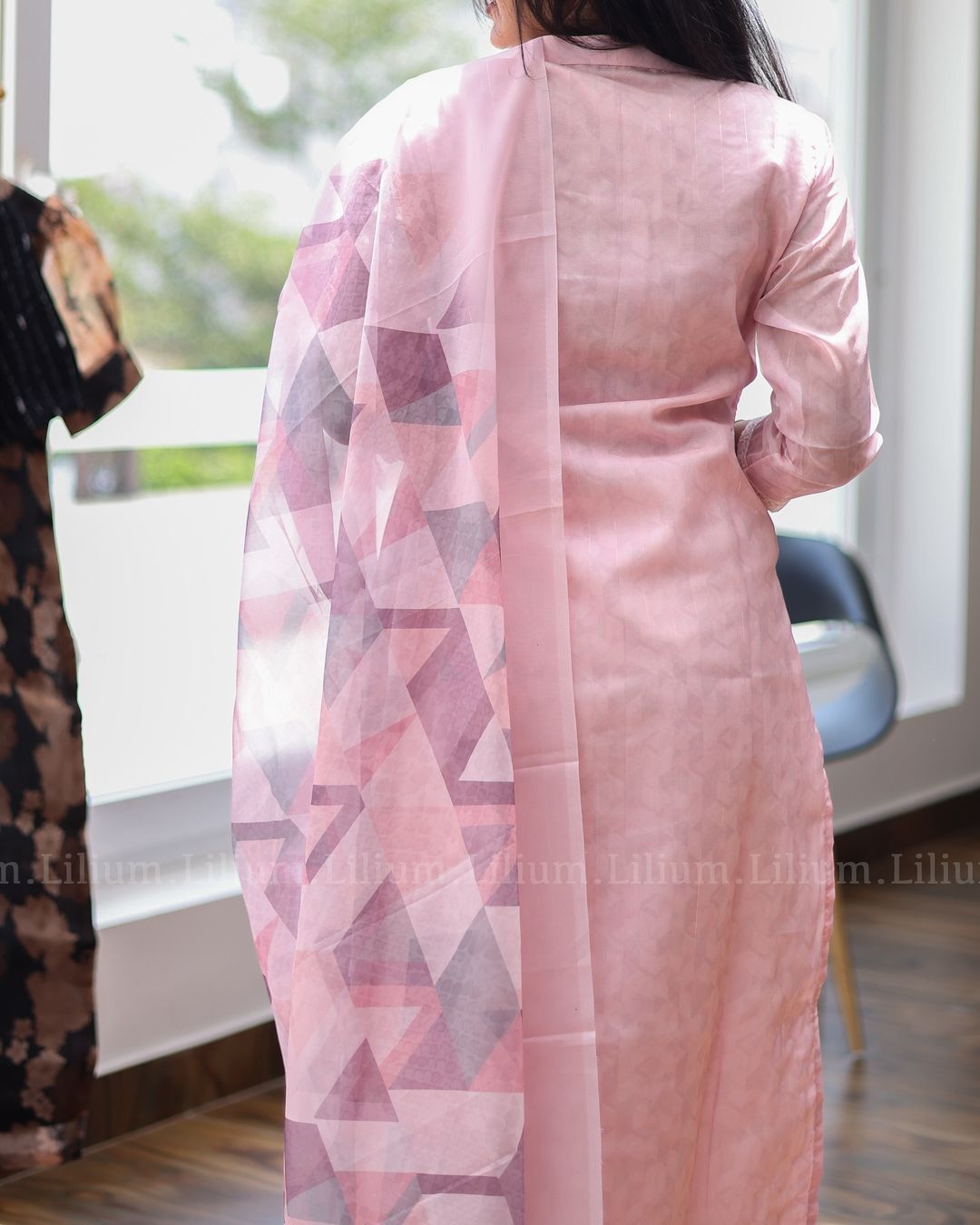 Featuring beautiful Heavy Suit Set which is beautifully decorated with intricate hand coding heavy embroidery, Zari weaving . It is paired with matching pants and Lace Dupatta.