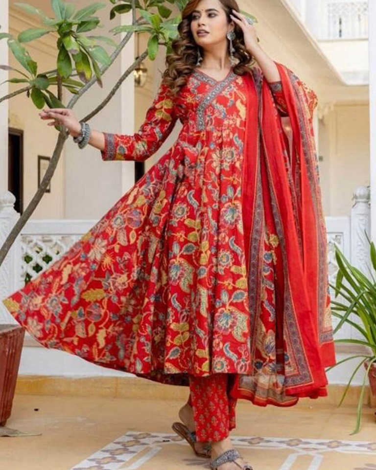 New stylish and affordable beautiful angrakha anarkali set with beautiful print and fabric pure Cotton๐๐ stylish angrakha anarkali set Wrok -: Sequence Adda Work Over kurti Hand and Nack ๐งถ product ~ kurti + pant + dupatta (SM FASHION ) |