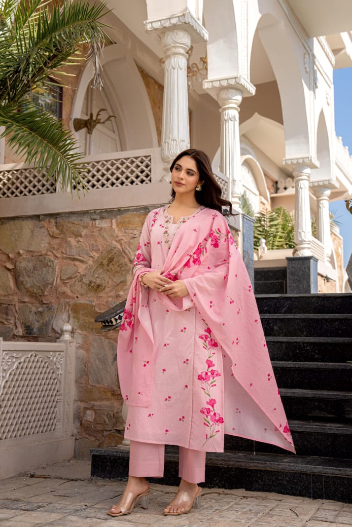Elevate your ethnic wardrobe with this elegant cotton kurta set, crafted from premium 60-60 cotton fabric for all-day comfort and breathability. This ensemble features a beautifully embroidered kurta with delicate white threadwork on the neckline and sleeves, adding a subtle charm to your look. Paired with a stylish printed dupatta adorned with floral motifs, this set blends traditional grace with a modern touch. The kurta comes with matching pants for a complete look thatβs perfect for casual outings, festive gatherings, or daily wear. Key Features: Color: Cream with pink floral accents Fabric: 60-60 Cotton (soft & breathable) Embellishment: White embroidery on the kurta Dupatta: Lightweight with floral print ππ (HARSH ENTERPRISES) |